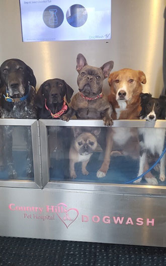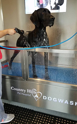 The Self-Serve Dog Wash is separately enclosed from the clinic and can be accessed 24/7 for your convenience. For just $5 your pet will receive 7 minutes of a washing service of your choice, complete with a blow-drying option. Services include shampoo, conditioner, and rinse. The Self-Serve Dog Wash accepts tokens or exact change only, no credit cards. The LCD screen offers walk-through instructions on how to give your dog the proper bath.